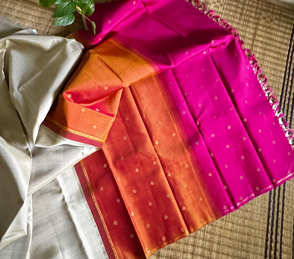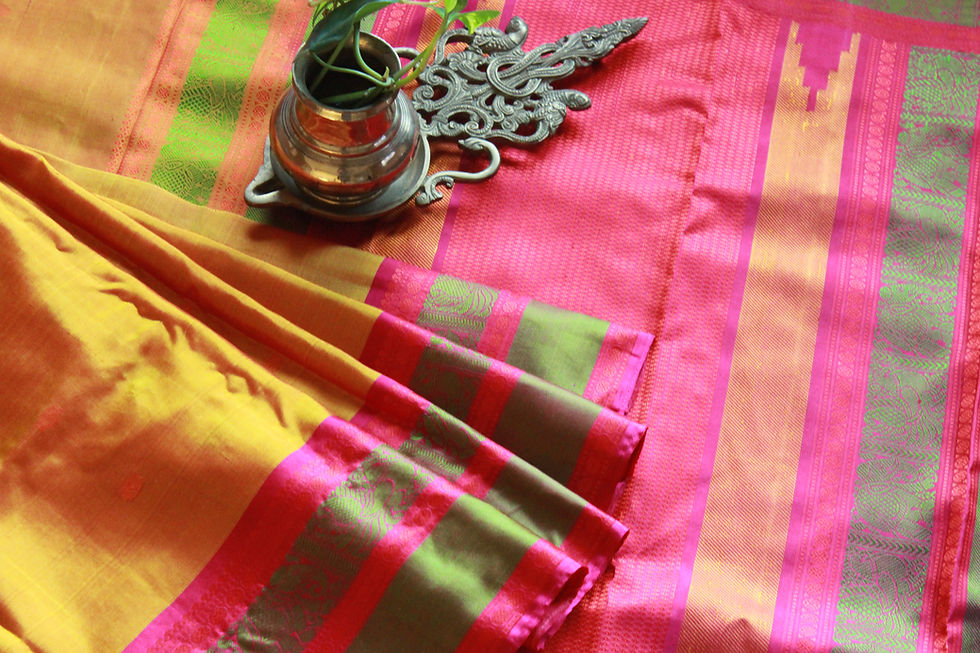 The Kanjipuram silk are woven from pure mulberry silk thread,